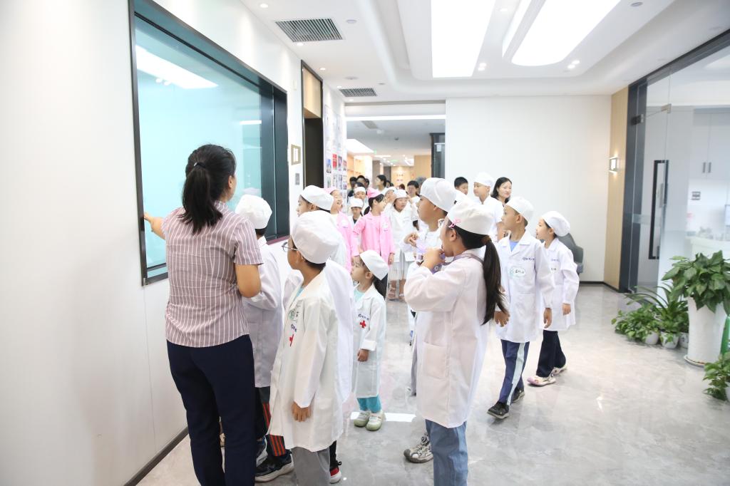 在醫(yī)務人員的帶領(lǐng)下,“小牙醫(yī)”們興致勃勃地參觀了口腔醫(yī)院的各個功能區(qū)。從溫馨的診室到先進的醫(yī)療設備,工作人員用淺顯易懂的語言介紹了各種牙科設備的功能,讓孩子們對牙科醫(yī)院有了更直觀、更全面的認識。